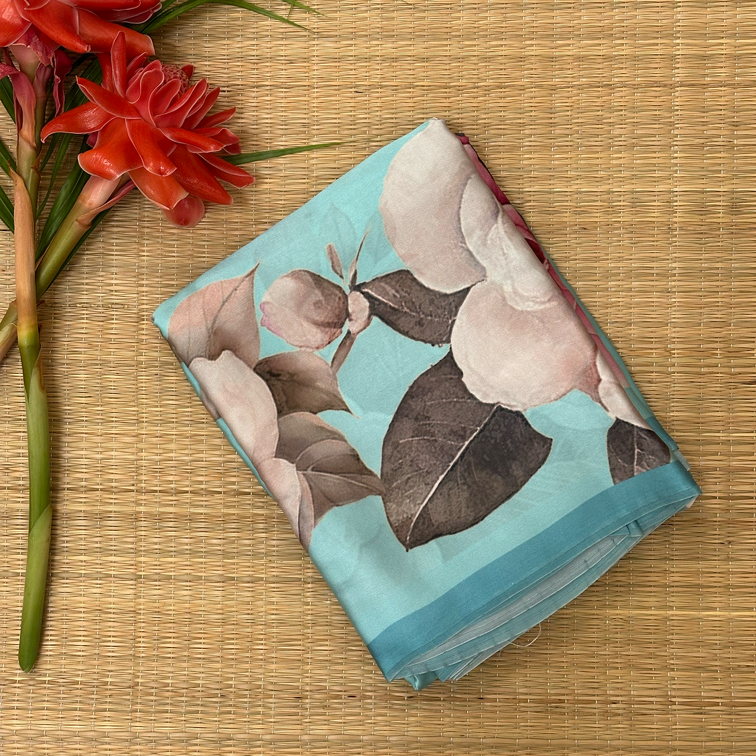 Blue Pure Georgette Saree with Multicolour Floral Digital Print and Blouse