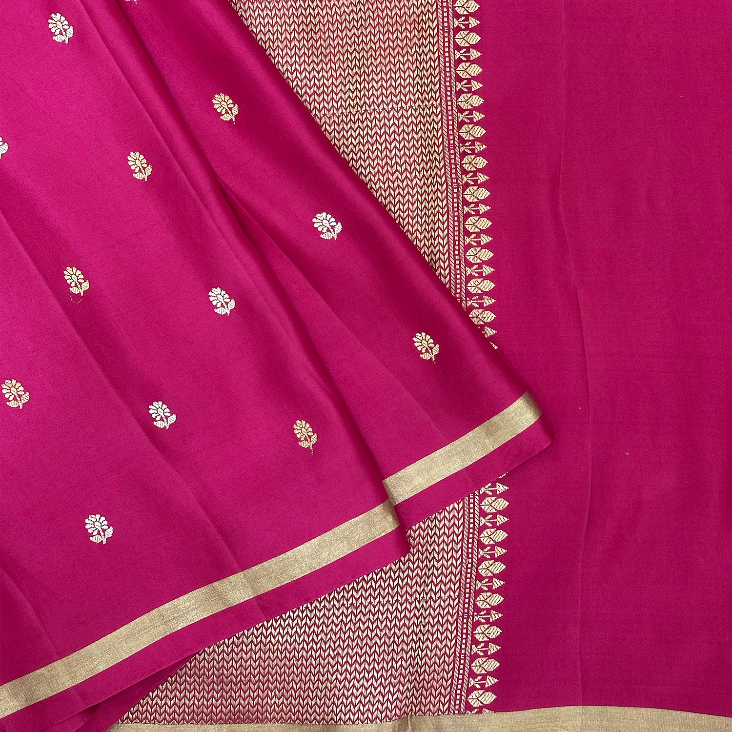 Bright Magenta Pure Zari Mushru Silk Saree with Elegant Floral Weave