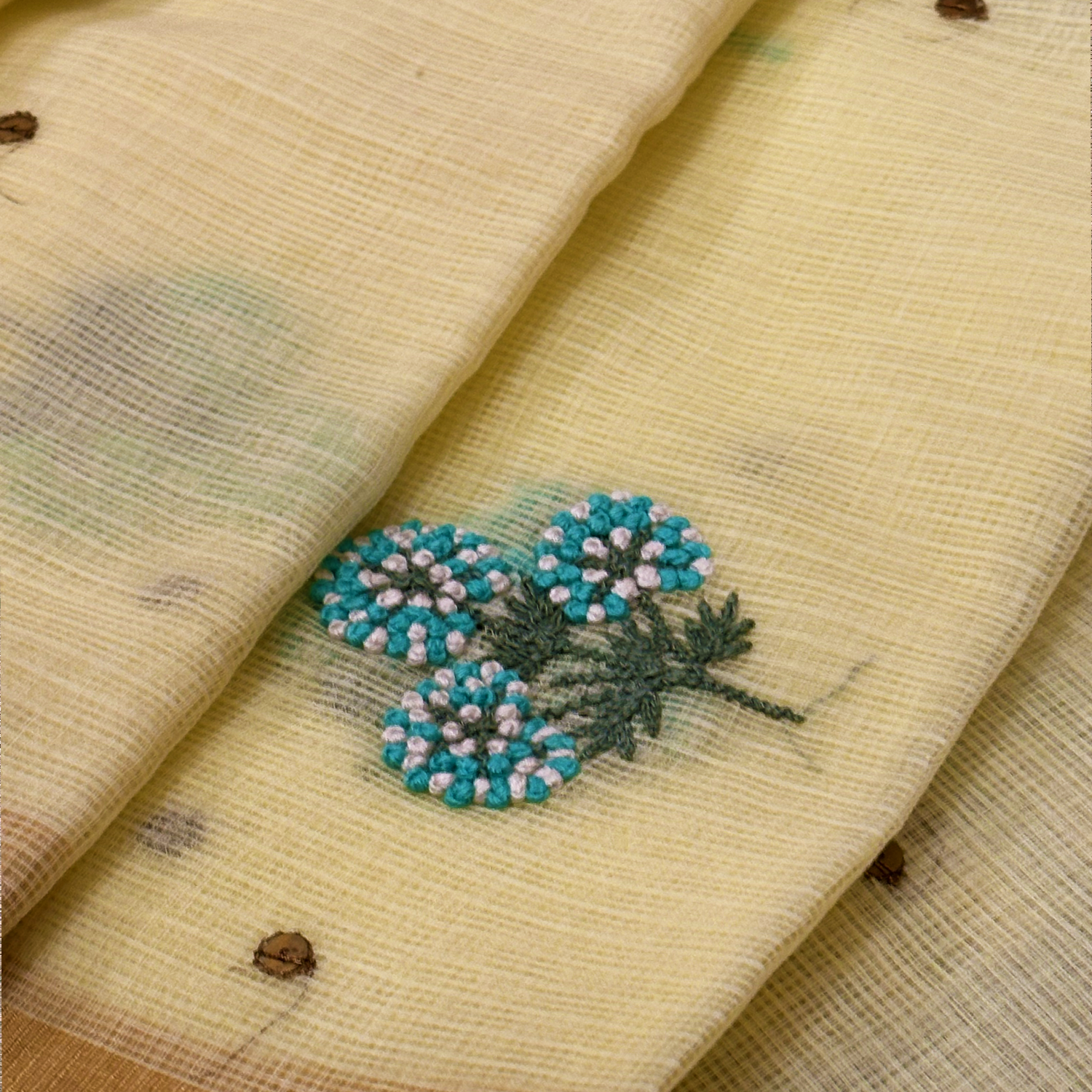 Lemon Yellow Pure Cotton Kota Saree with Hand Embroidery