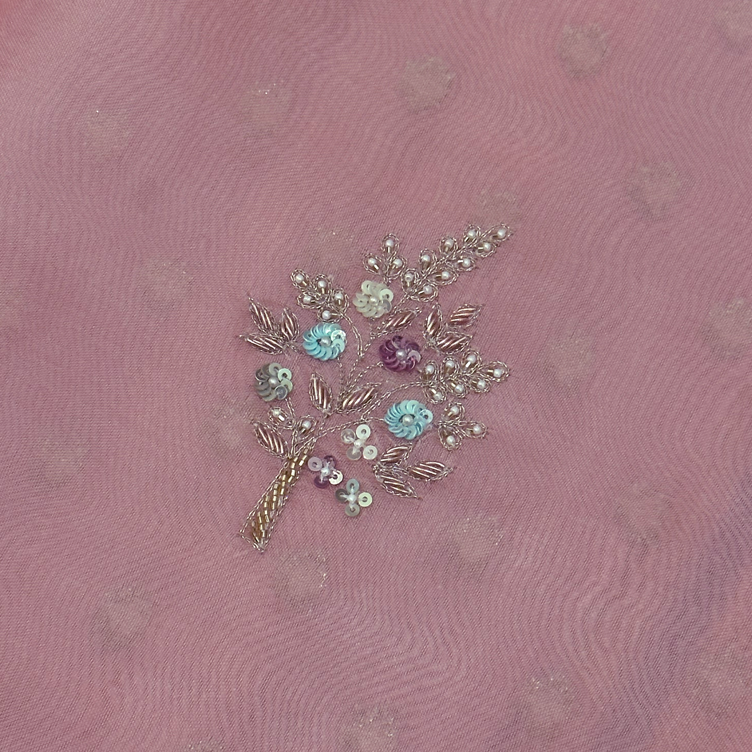 Light Pink Silk Organza Saree with Hand Embroidery & Scallop Border