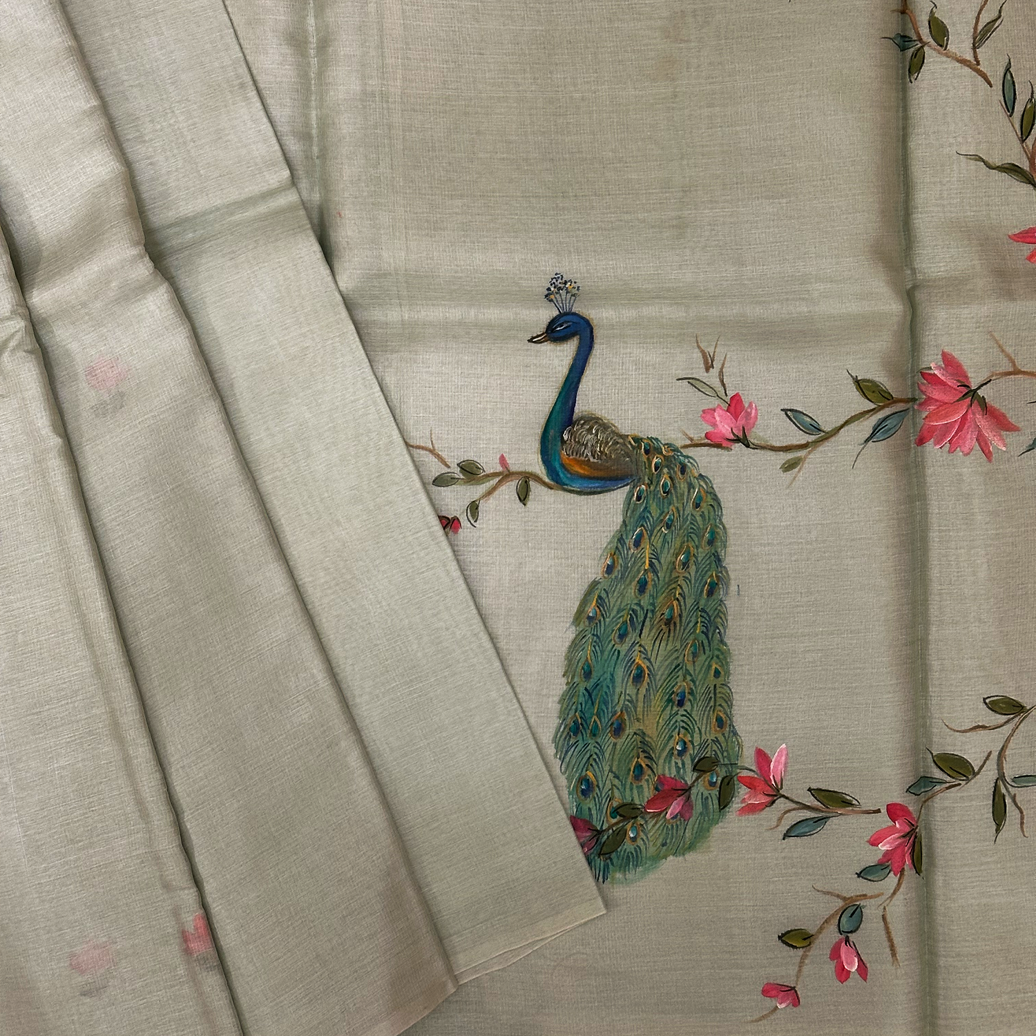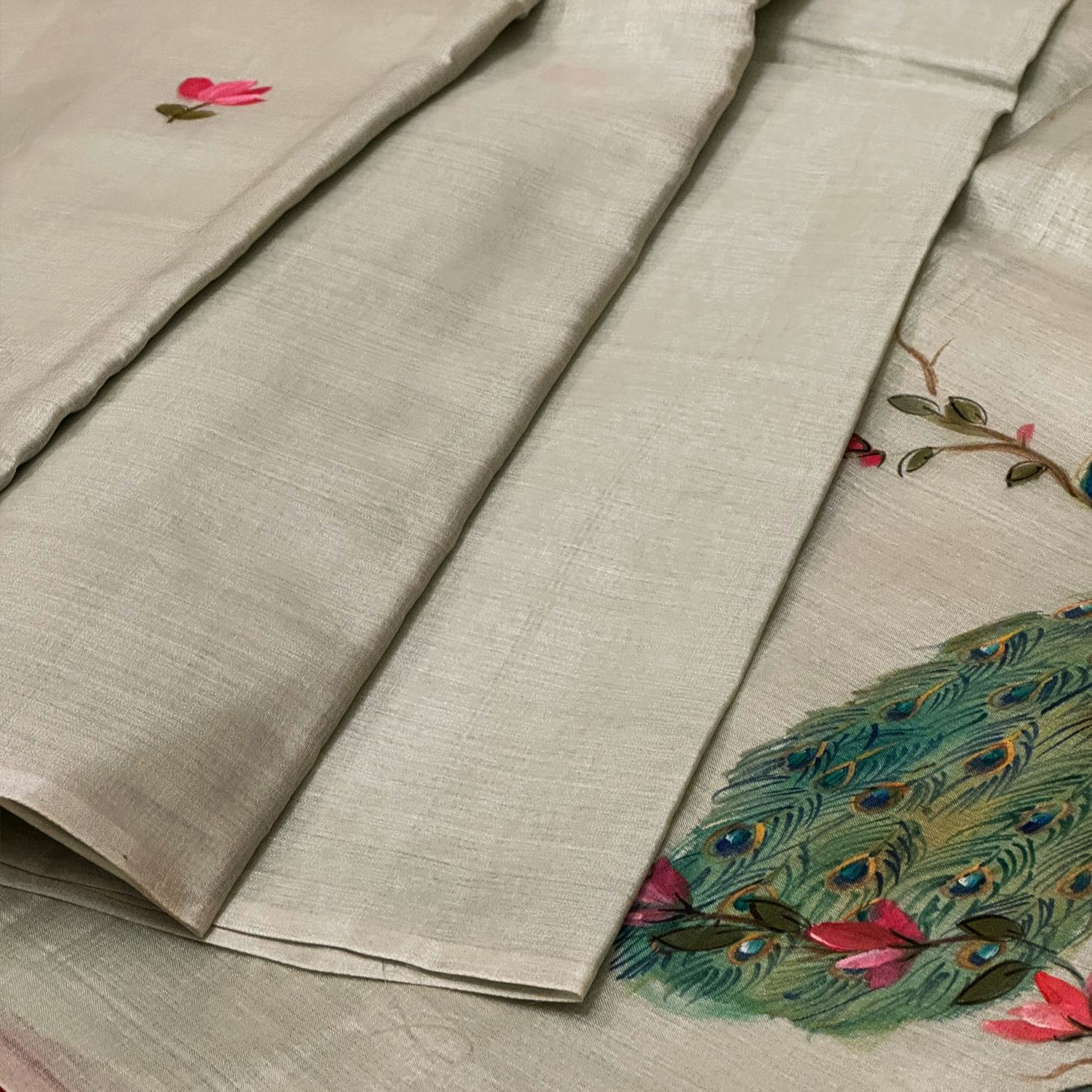 Natural tussar silk base with hand painted floral artwork