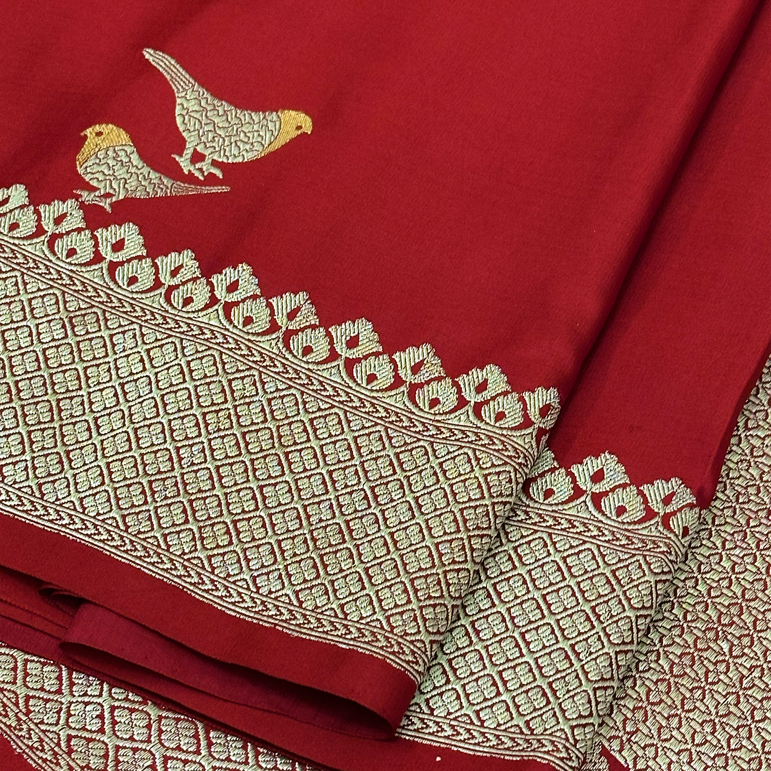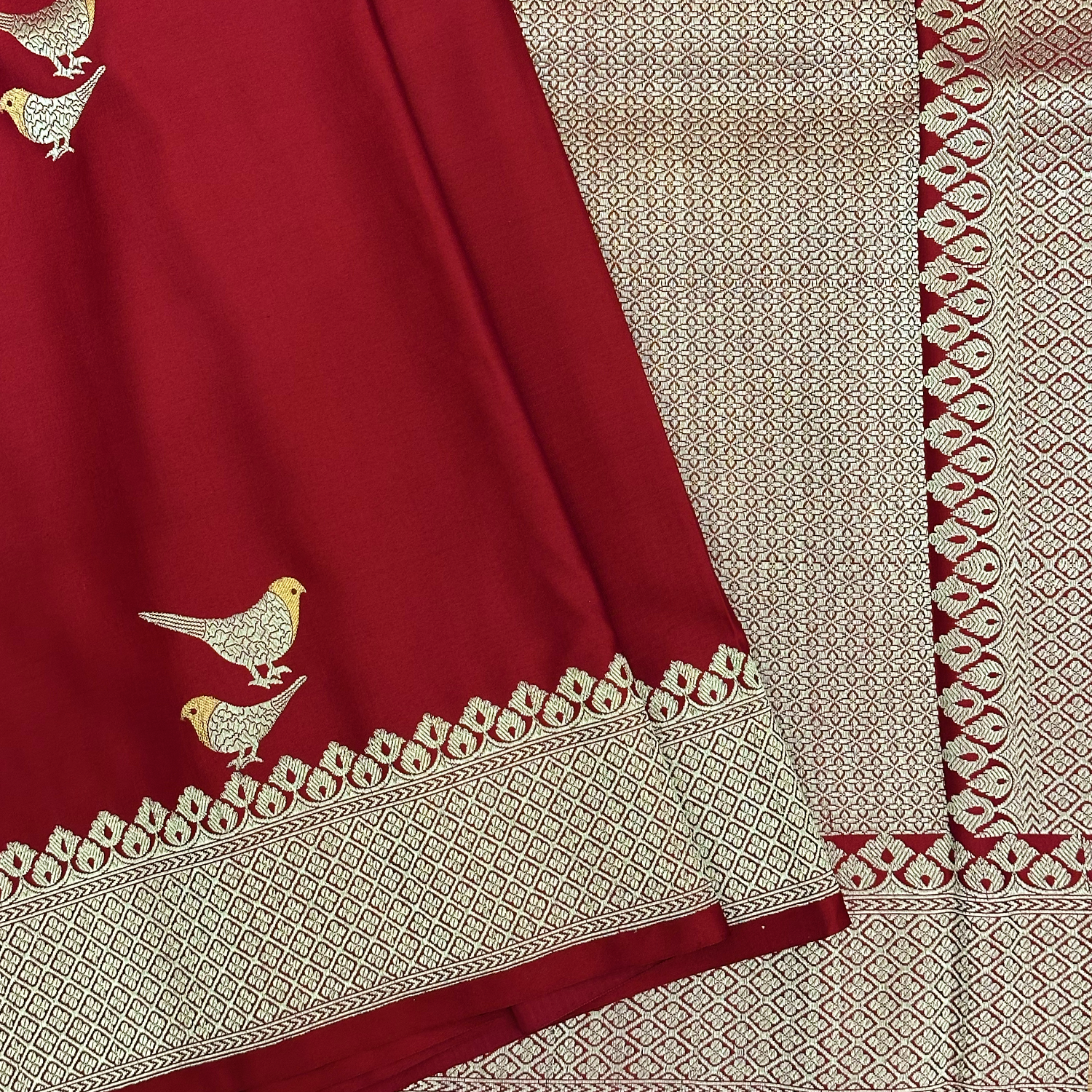 Maroon Mushru Silk Banarasi Saree with Pure Zari & Intricate Bird Motif Weave