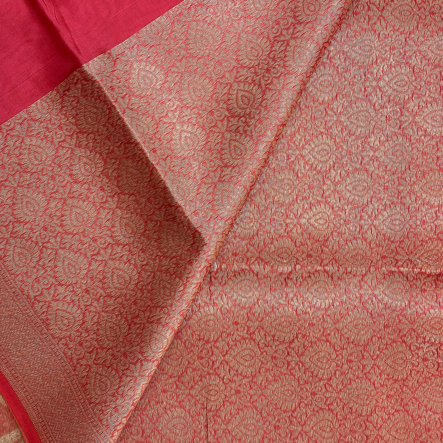 Rich Pink Kora Tissue Saree with Banarasi Blouse Fabric
