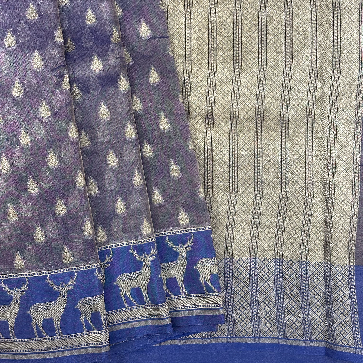 Royal Blue Kora Tissue Banarasi Saree with Antelope Border & Intricate Weave