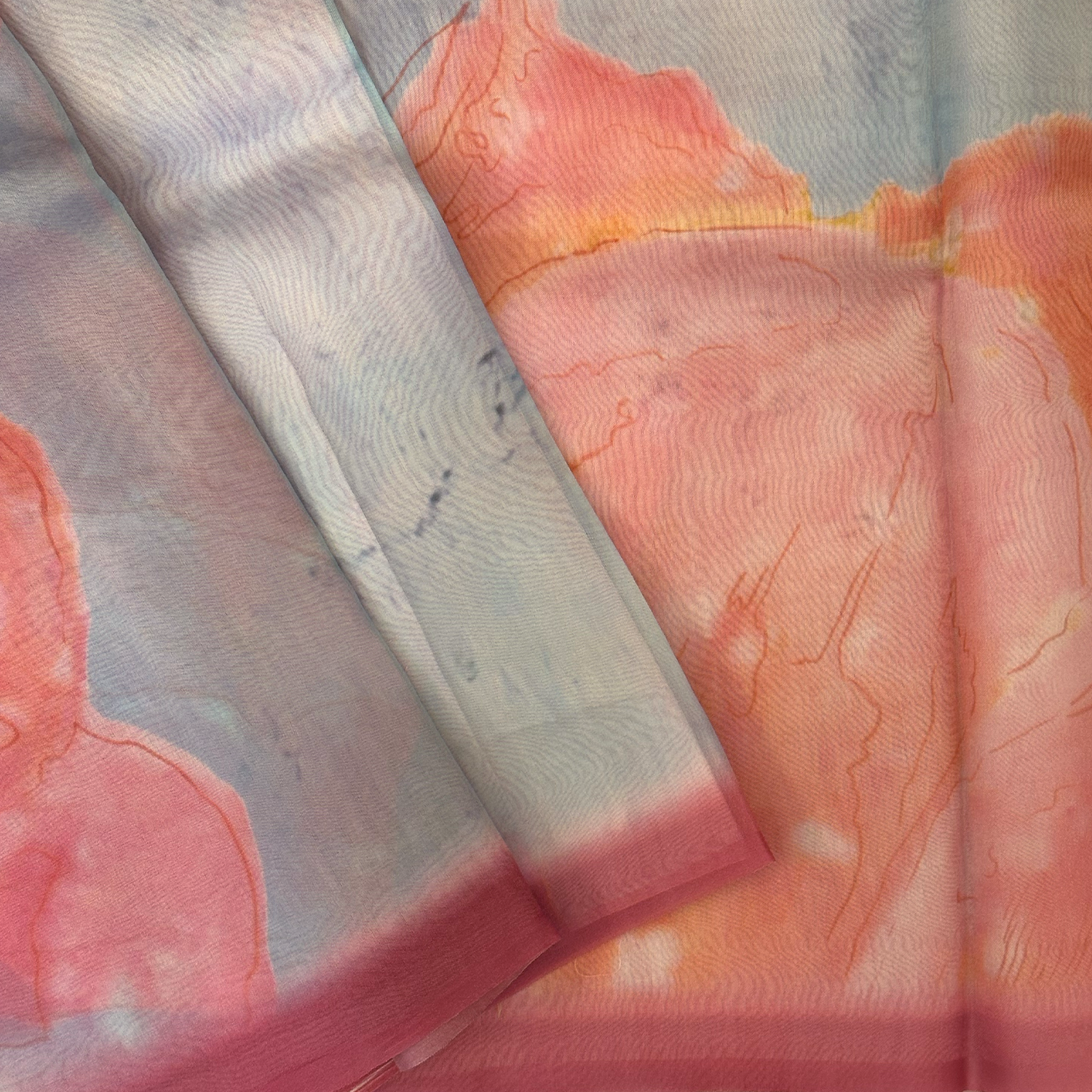 Soft, breezy, and effortlessly elegant, this sky blue organza saree features a delicate digital print that adds subtle charm to its sheer, luminous fabric. Lightweight and airy, it drapes beautifully, making it perfect for daytime events, casual gatherings, and light festive celebrations.